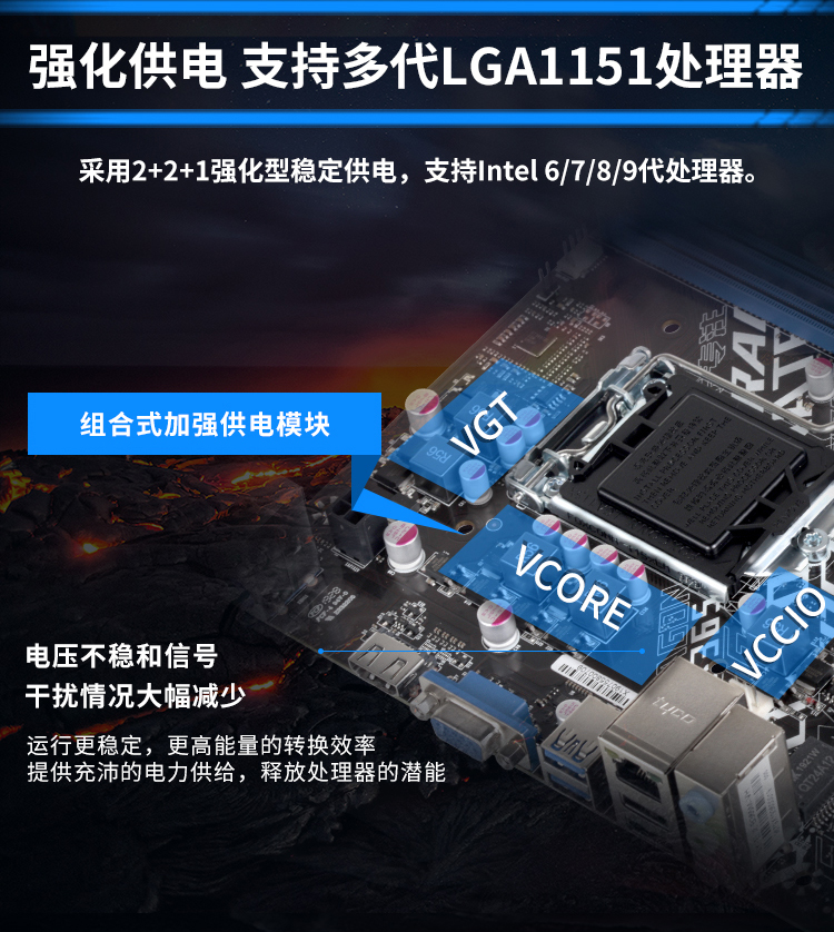 至于供電方面,狂龍B365M-VH采用3+1+1加強型供電,確保處理器的穩(wěn)定運行。而且得益于B365芯片組的特殊性,主板還可以支持除了intel 9代外的6、7、8代處理器,而官方推薦使用TDP 65W以內(nèi)。