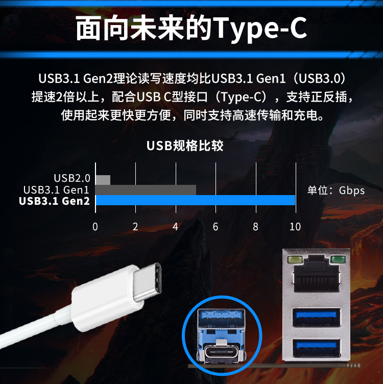 另外,主板擴展性十足,滿足用戶對性能的擴展需求。雙DDR4內(nèi)存插槽,帶來更快的速度和更加強悍的性能。支持三屏輸出,滿足玩家的各種顯示需求。同時配有USB3.1 Gen2 Type-C接口,實用方便。